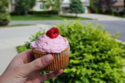 Spread/pipe it on some vanilla cupcakes (use your favorite recipe!) and take a big ol' bite. Make sure you put a raspberry on, too!